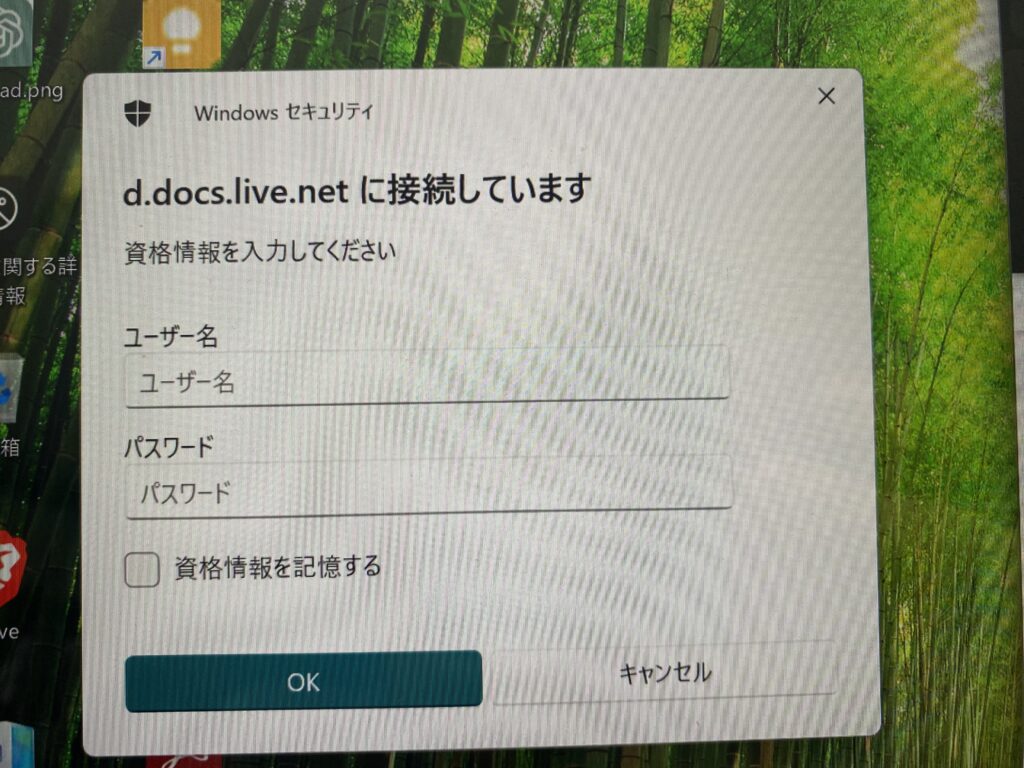いきなり「d.docs.live.net 」なんて見慣れないドメインがでできたら、そりゃ身構えますよね。それもログイン情報を入力してください、という画面です。