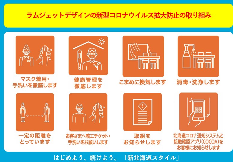 お客様とラムジェットデザインの健康と安全確保の為に、ご理解とご協力をお願い申し上げます。